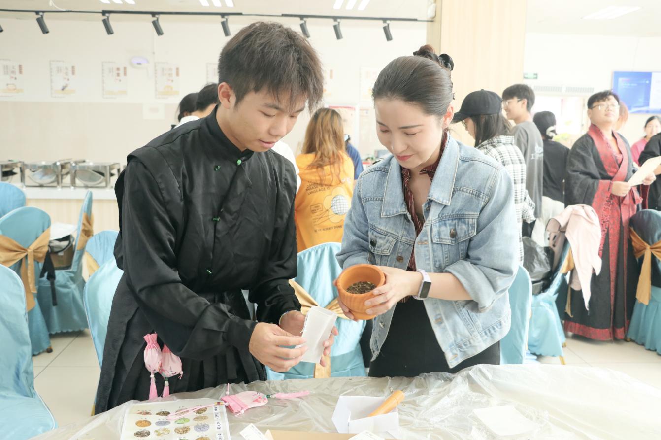 活动现场设置了剪纸、猜灯谜、制香囊、插花等多个体验区,现场的工作人员身着传统汉服担任特色“摊位主理人”,成为一道亮丽的风景线,为活动现场增添浓厚的古风韵味。