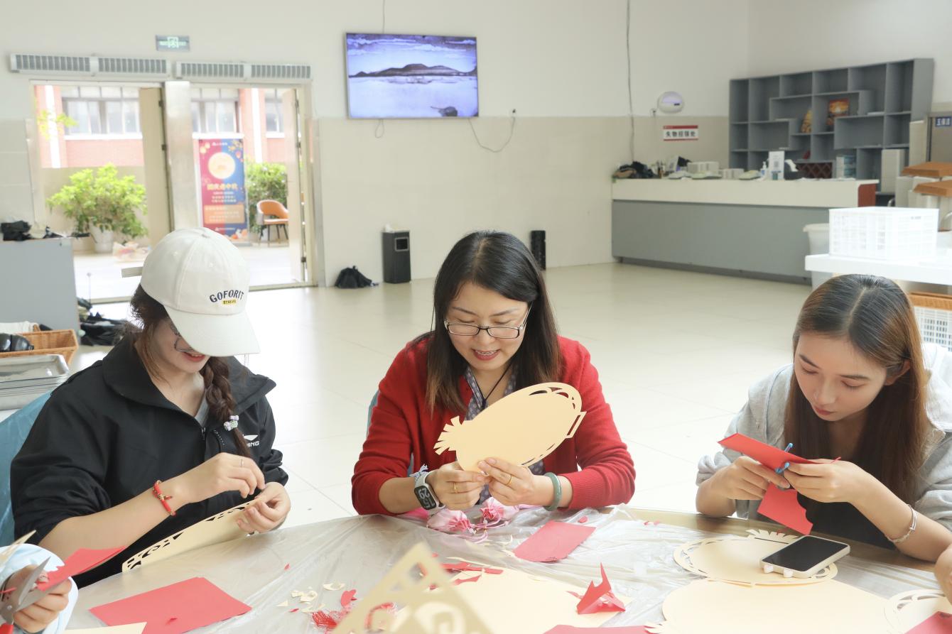 在“巧思妙解”灯谜区,众多奇妙灯谜等待师生们开启头脑风暴;“心灵手巧”⼿工区则会同时开展剪纸和制香囊两项活动,让师生们尽情体验传统技艺的乐趣,大家在指导下亲手缝制香囊或学习剪纸技巧,用红纸精心剪裁出象征团圆的图案,感受非遗技艺的精妙。