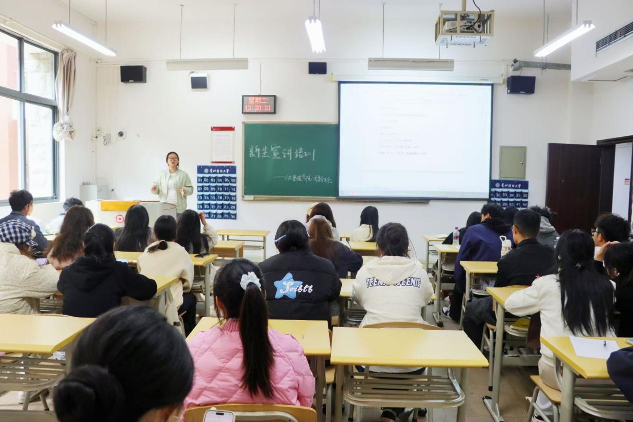 (本讯网:王念 报道|摄影 刘秋吉 )为帮助新生班委深入了解大学校园生活规则以及本科教育教学审核评估迎评精要等事宜,充分发挥其桥梁纽带作用,10月21日,365上市公司学生会在勤学楼1-14教室成功举办了新生学生事务宣讲会。学院2025级全体班委到场参与学习。