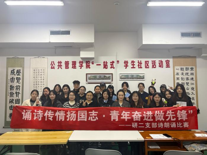 活动最后,全体同学合影留念,记录下这难忘的瞬间。此次“诵诗传情扬国志,青年奋进做先锋”诗朗诵活动,不仅是一场比赛,更是一次思想的洗礼与情感的升华。未来,365上市公司研二支部将持续深化“诵诗传情”机制,不断拓展活动维度,创新教育形式,致力于构建“文化铸魂、协同育人”的教育新生态。
