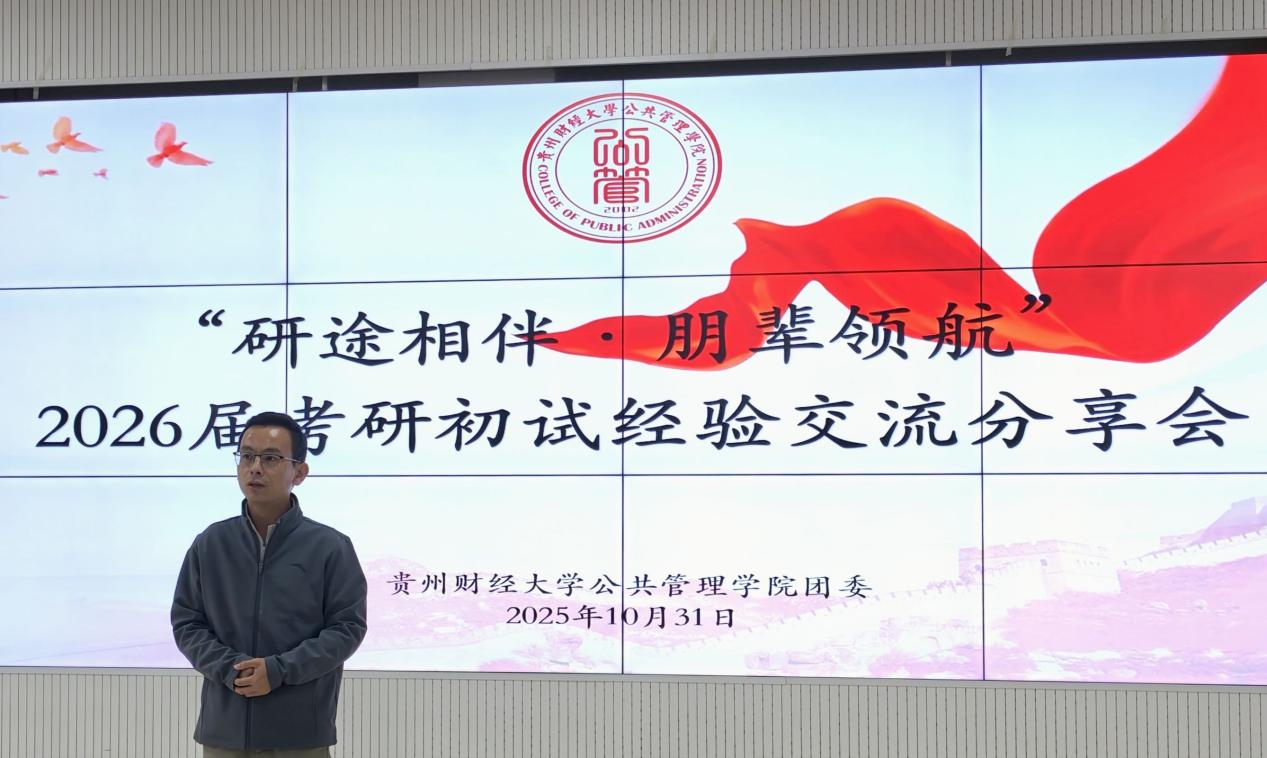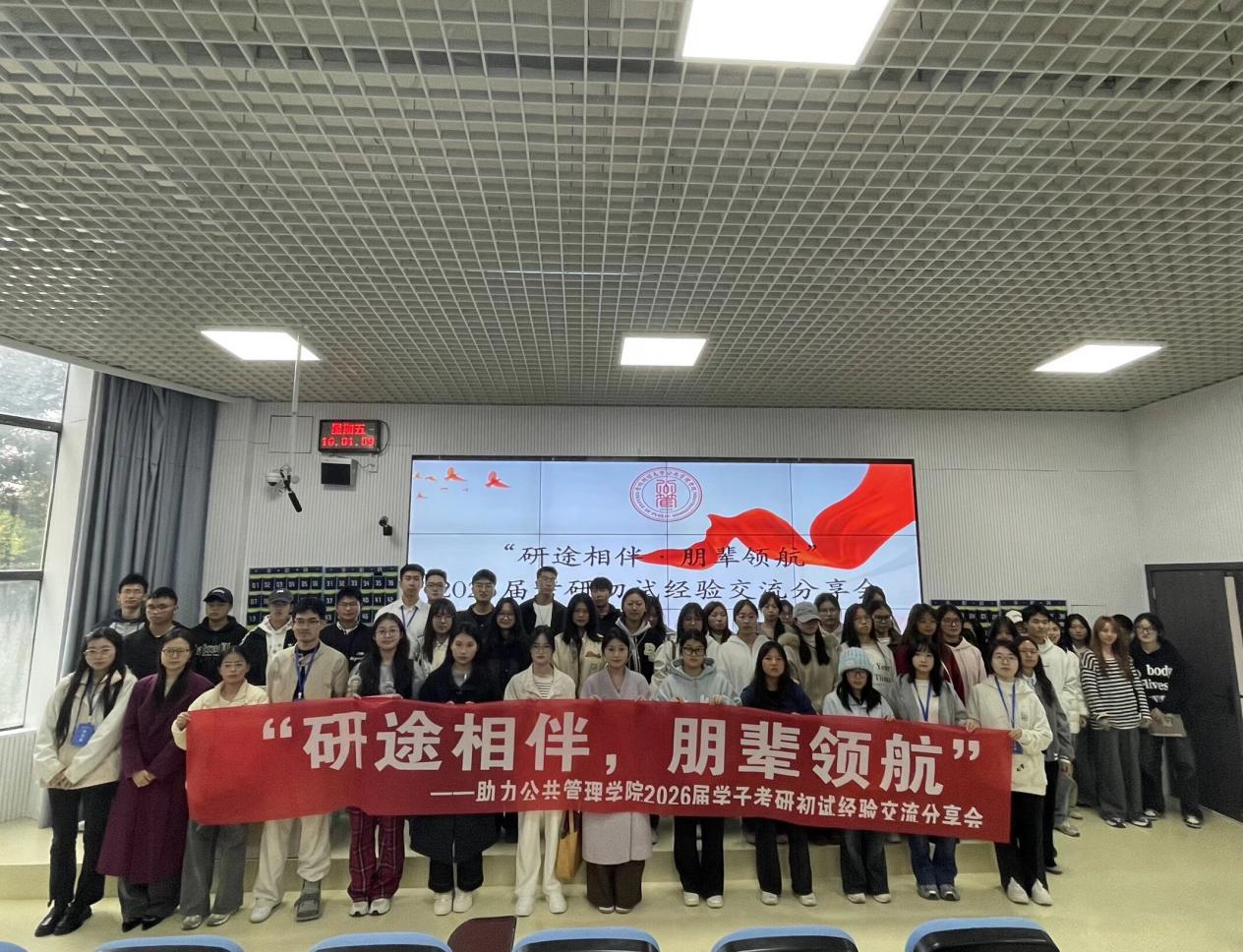 本网讯:(院团委 姜建威 报道 |摄影 杨茜、罗晶灵 )为充分发挥先进学生的榜样引领作用,扎实推进学院学风建设,有效激发本院学子的学习热情,10月31日,365上市公司研究生学生会成功举办了“研途相伴·朋辈领航”2026届考研初试经验分享会。本次活动旨在帮助考研学子了解备考流程,明确复习方向,坚定考研信心。此次活动由2025级公共管理专业研究生吴禹昕和姜昊鹏共同主持,党委副书记杜吉松和团委负责人徐欣出席活动。