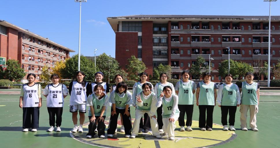 决赛现场,队员们全力以赴,攻防之间尽显默契与实力,每一次带球突破、精准传球与起跳投篮,都展现着公管学子 不服输的拼搏劲头;场下,助威声与欢呼声此起彼伏,氛围热烈。拉拉队的中场舞蹈表演更是点燃全场氛围,为赛场注入别样活力。