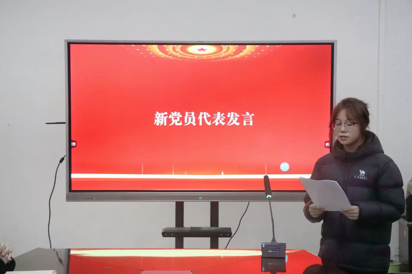 新党员代表李梦燃在发言中回顾了个人的入党历程,她表示将以更高标准要求自己,在理论学习、工作实践和纪律作风上发挥模范带头作用,不断锤炼党性,提升自我,展现共产党员应有的风貌。